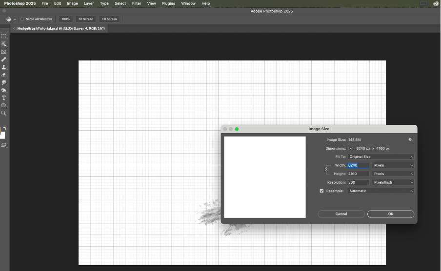 2. The image is too large – if images are too large it will grey out define brush preset – to reduce your image size (make sure the image layer is selected) then go layer – image size and reduce the size….